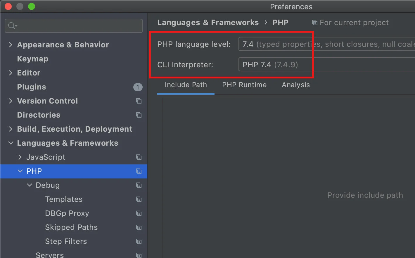 打开 Preferences > Languages & Frameworks > PHP